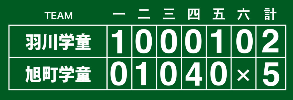5日間にわたり、トーナメントで進行され、旭町学童と羽川学童が最終日の決勝に進出した。